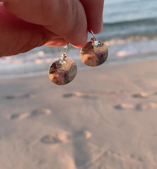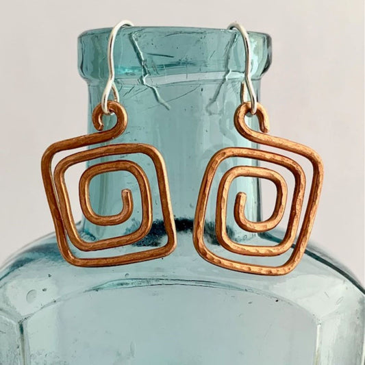 Copper Square Spiral Hammered Dangle Drop Earrings