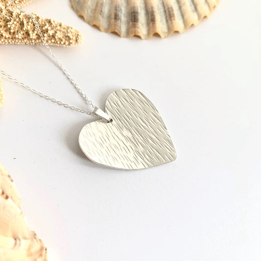 925 Sterling Silver Hand Stamped Heart Pendant Necklace
