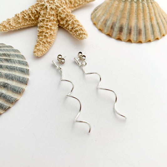 925 Sterling Silver Spiral Wavy Stud Dangle Drop Earrings