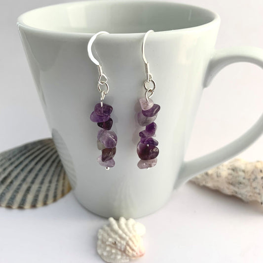925 Sterling Silver and Amethyst Gemstone Dangle Drop Earrings