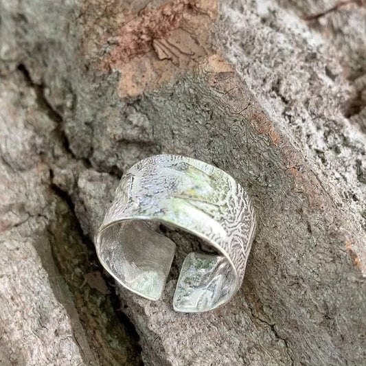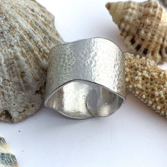 925 Sterling Silver Wide Statement Ring with a Wavy Edge