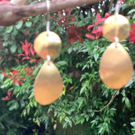 Circle and Teardrop Textured Brass Gold Dangle Earrings