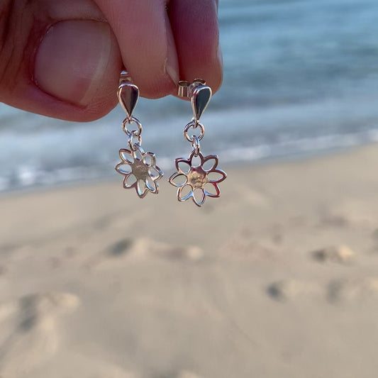 925 Sterling Silver Hammered Daisy Flower Drop Earrings