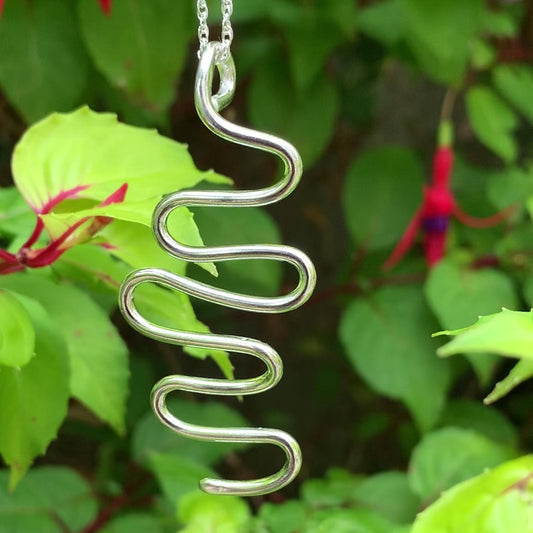 925 Sterling Silver Snake Like Wavy Necklace Pendant