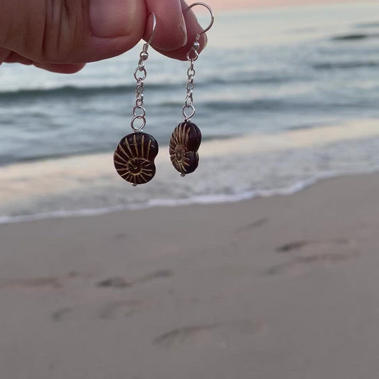 Czech Glass Ammonite Design Dangle Drop Earrings
