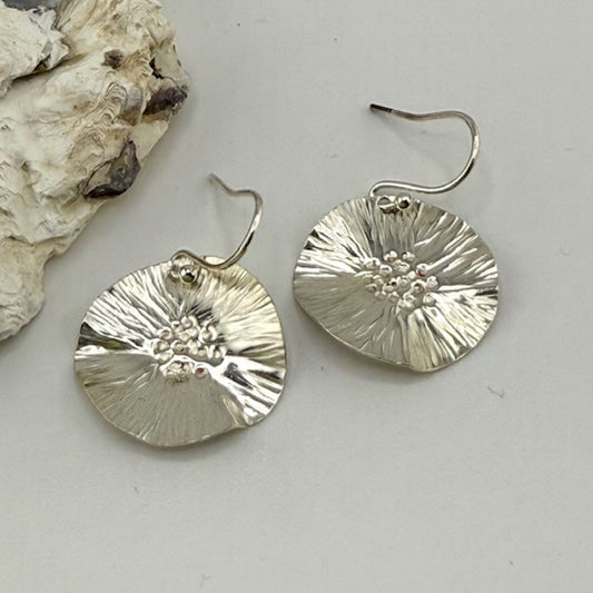925 Sterling Silver Hammered Daisy Flower Drop Earrings