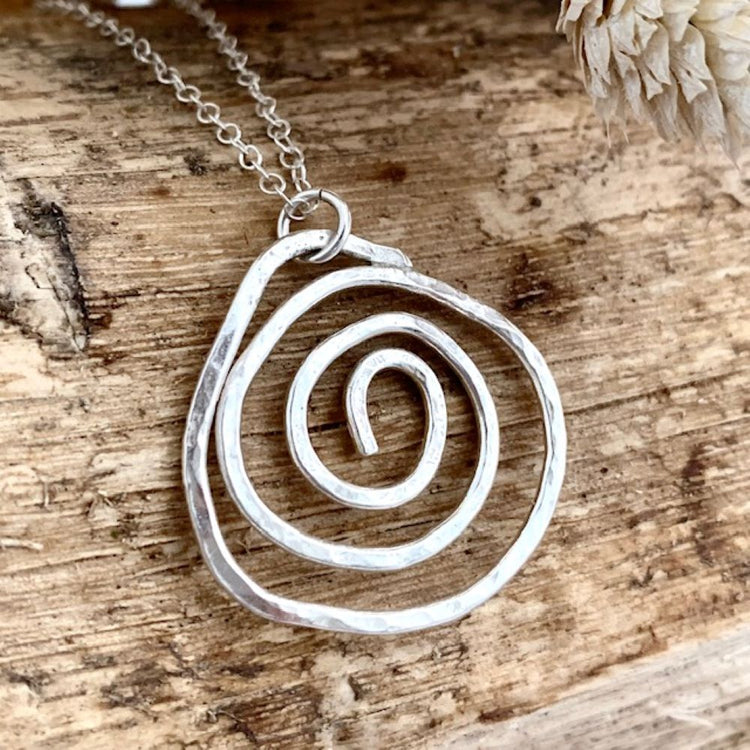 Handcrafted Sterling Silver Hammered Celtic Spiral Pendant Necklace