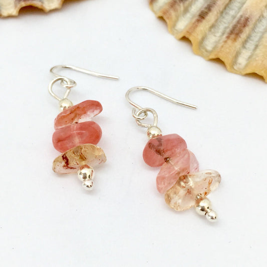 Natural Cherry Quartz Gemstone Dangle Drop Earrings
