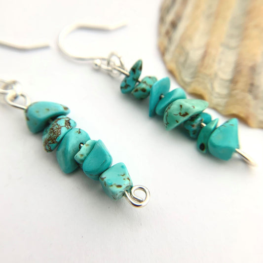 Natural Blue Green Turquoise Gemstone Dangle Drop Earrings