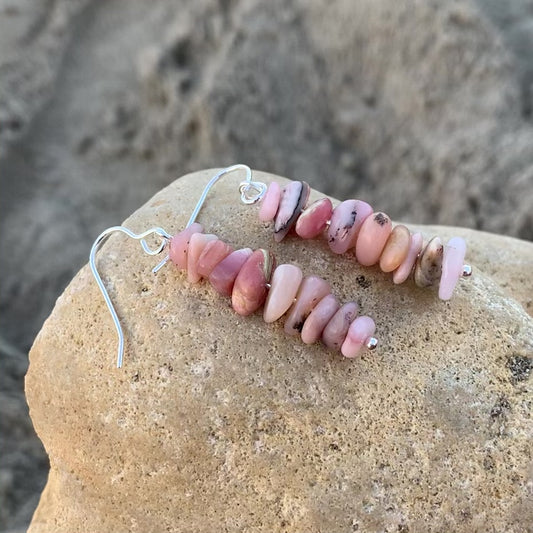 Little Pink Opal Gemstone Dangle Drop Earrings