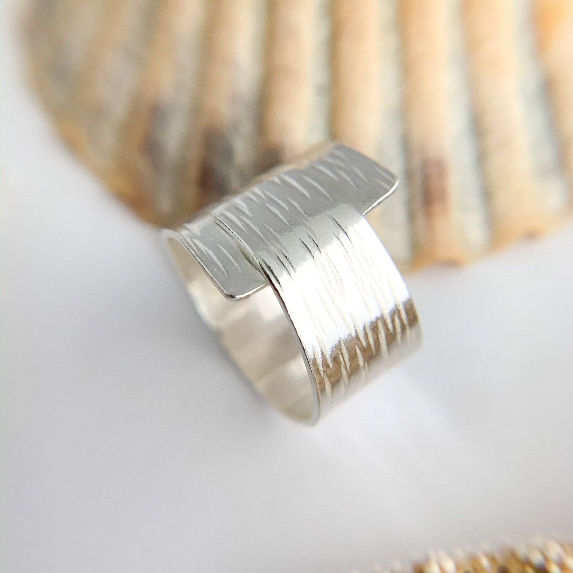 Handcrafted Textured 925 Sterling Silver Wrap Over Ring Band